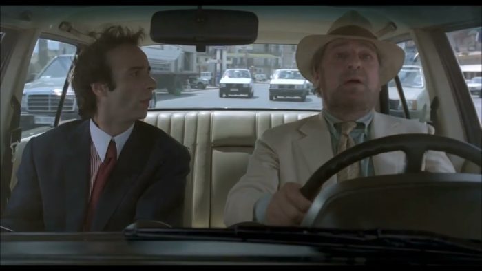«… il sole, il mare, i fichidindia, Empedocle, Archimede. Purtroppo siamo famosi nel mondo anche per qualcosa di negativo, quelle che voi chiamate piaghe. Una terribile, e lei sa a cosa mi riferisco…. è L’Etna, il vulcano che quando si mette a fare i capricci distrugge paesi e villaggi. Ma è una bellezza naturale…… eee ma c’è un’altra cosa, e questa è veramente una piaga grave che nessuno riesce a risolvere, lei mi ha già capito… è La Siccità… da queste parti la terra d’estate brucia… è sicca, una brutta cosa… Ma è la natura… e non ci possiamo fare niente… Ma dove possiamo fare e non facciamo perchè, in buona sostanza purtroppo non è la natura ma l’uomo… dov’è?? E’ nella terza e più grave di queste piaghe, che veramente diffama la Sicilia ed in particolare Palermo agli occhi del mondo….eee lei ha già capito, è inutile che io glielo dico, mi vergogno a dirlo…. è Il Traffico… troppe macchine… è un traffico tentacolare, vorticoso che ci impedisce di vivere e ci fa nemici… famigghia contro famigghia, troppe machine!“.….».