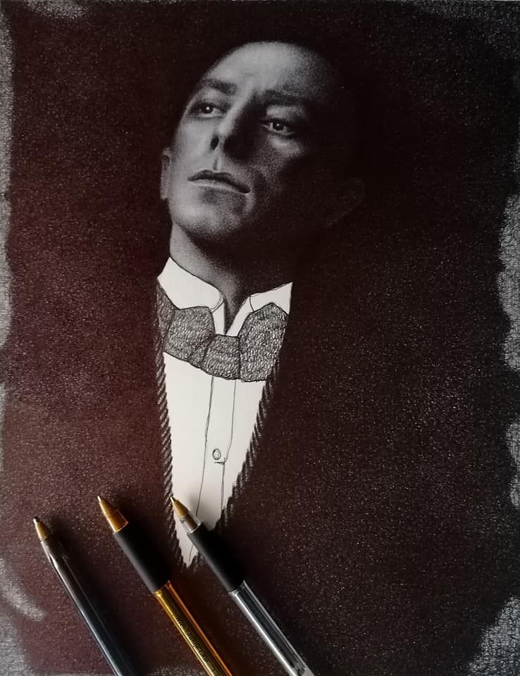 Adele Ceraudo, in arte Lady Bic per la sua tecnica unica e riconoscibile, il disegno con la penna Bic con la quale va oltre ogni immaginazione, ha deciso di rendere omaggio ad uno dei principali esponenti e teorici della pittura futurista, un giovane talento, un uomo intelligente, curioso e un’anima inquieta. La sua genialità nella tecnica, la sua versatilità, le sue sperimentazioni artistiche d’avanguardia e la sua  originalità sono alcuni degli aspetti che hanno spinto Adele Ceraudo a ritrarlo, ma sono stati soprattutto il suo temperamento e la carica emotiva che impiegava in tutte le sue opere pittoriche a catturare l’interesse di Lady Bic.