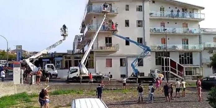 Vasto incendio all’Hotel Marechiaro a Campora San Giovanni di Amantea: sono arrivate le squadre dei vigili del fuoco da Paola e Lamezia (ore 17,30). Nel frattempo, prima dell’arrivo dei pompieri, le persone che si trovavano all’interno della struttura sono state già evacuate dal primo e dal secondo piano con alcune piattaforme aeree di fortuna messe a disposizione da persone del posto. I vigili del fuoco hanno poi completato l’evacuazione di tutte le 98 persone presenti nell’albergo. Dalle prime informazioni, sembrerebbe che il rogo sia stato generato da un problema al quadro elettrico. Sei persone hanno ricevuto assistenza dalle ambulanze del 118 intervenute sul posto a causa delle esalazioni.