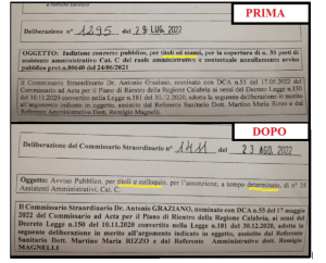 Il 29 luglio l’Asp di Cosenza pubblicava un bando di concorso praticamente identico. Sembra il gioco della settimana enigmistica: aguzza la vista e trova le piccole differenze. Piccole ma fondamentali. Il primo bando, quello del 29 luglio, il concorso sempre per 35 persone e sempre per la stessa posizione erano posti a tempo indeterminato e il concorso prevedeva titoli ed esami.