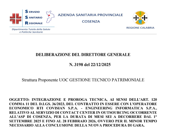 Ormai siamo talmente assuefatti che neanche ci scandalizziamo più ma le notizie vanno date e noi siamo qui per questo. La “notizia” di oggi riguarda il servizio Cup e contact center outosourcing dell’Asp di Cosenza, che è stato prorogato ad arte per la quinta volta (!) a favore della ditta Covisian, evidentemente molto apprezzata – per usare un eufemismo – dai vertici dell’Asp cosentina.