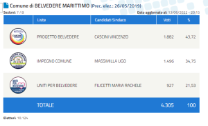 Belvedere, Cascini rieletto sindaco