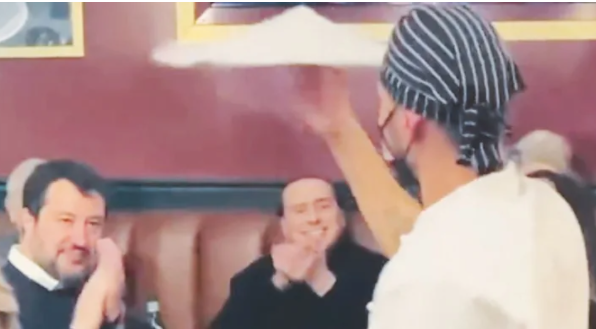 (GIACOMO SALVINI – Il Fatto Quotidiano) – Pizze che roteano, cori da stadio e fazzoletti bianchi agitati a mo’ di panolada. Per una sera, quella di venerdì, le terribili immagini della sofferenza ucraina sono rimaste fuori dal “Crazy Pizza”, il ristorante milanese di Flavio Briatore in via della Moscova che una settimana fa ha aperto una filiale anche nel cuore di Roma, in via Veneto. I partecipanti alla festa venerdì sera erano illustrissimi: Silvio Berlusconi e Matteo Salvini, accompagnati dai rispettivi uomini e donne di fiducia. Una serata di “relax” l’ha definita il leader della Lega che viene ripreso in diversi filmati ad applaudire, a cantare i cori in onore di Berlusconi (“c’è solo un presidente”) e a brindare in compagnia. Foto e video che stridono con l’immagine dismessa, ecumenica, pacifista e pro-immigrazione che il leader della Lega ha voluto dare di sé negli ultimi giorni arrivando addirittura a deporre un mazzo di fiori davanti all’ambasciata ucraina a Roma con tanto di video sui social. Concetto che Salvini ha ribadito anche ieri chiedendo “lo stop delle bombe” e “l’accoglienza” dei profughi.