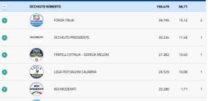 FORZA ITALIA: Sergio Ferrari 12.134; Marco Polimeni 8.838 OCCHIUTO PRESIDENTE: Emanuele Ionà 6.833; FRATELLI D’ITALIA: Antonio Montuoro 11.920; LEGA: Filippo Mancuso 12.130; NOI MODERATI: Vito Pitaro 11.995