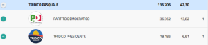 CONSIGLIERI ELETTI – PD: Ernesto Alecci 12.591 – TRIDICO PRESIDENTE: Enzo Bruno 2.728