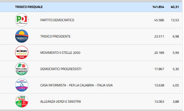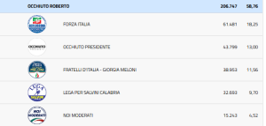 CALABRIA 2025. DATI REALI LISTE 1.277 SEZIONI SU 2.406