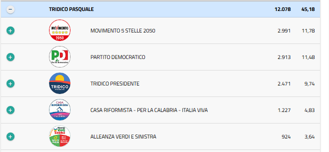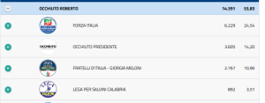 Aderiamo alle richieste di molti lettori e pubblichiamo l’esito del voto alle recentissime Regionali nel comune di Corigliano-Rossano, dove Occhiuto ha conquistato il primato con una percentuale vicina al 54% e dove la lista di Forza Italia, con il 24,5%, ha decisamente sbaragliato il campo mentre nella coalizione di centrosinistra M5s e Pd sono andate poco al di spora dell’11% e Avs è addirittura crollata sotto il 4%.