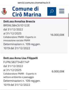 Appena vinte le elezioni a Cirò Marina, dopo aver fatto gli accordi con l’onorevole Filippelli ha fatto inserire nei progetti Pnrr del Comune la figlia… Siamo quasi all’ordinaria amministrazione.