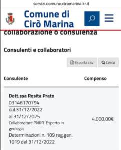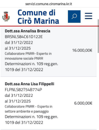E la stessa cosa è accaduta con la nipote dell’ex tecnico Patanisi, al secolo Rosina Prato, con la moglie del tecnico Scarpelli ma solo per riportare alcuni nomi di gente che ha percepito soldi del Pnrr…