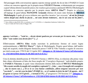 Di particolare rilevanza è quanto scrive la Dda in ordine a un concorso “ad hoc” per la compagna di Marco Miceli, figlio di Michelangelo presso l’Ufficio legale dell’Azienda Sanitaria Provinciale di Vibo Valentia. Proposito che non si è poi realizzato (anche a seguito dell’inchiesta): “Miceli Michelangelo richiedeva un concorso apposito per la nuora Arena Elisa” si legge nelle carte. Più tranchant sarebbero state le parole Papà Miceli che secondo l’allora segretario Pd di Mileto, Armando Mangone, avrebbe affermato: “senti tu…dovete darmi qualcosa per avvocato per la nuora mia..”.