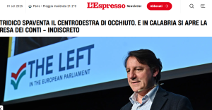 Ma non solo: neanche mezzora dopo, anche L’Espresso – che non è certo un media di destra – è uscito fuori con un articolo di tenore diverso ma che puntava e punta sempre al… culo sempre più flaccido di Occhiuto. Titolo: “Tridico spaventa il centrodestra di Occhiuto”. Un titolo che lascia chiaramente intendere che non è tutta la coalizione a sostenere Occhiuto e che nel centrodestra sarebbe partita addirittura la “vacca” per fargli perdere le elezioni nel caso dovesse candidarsi. Tradotto: Fratelli d’Italia, Lega e una parte consistente di Forza Italia “aiuterebbero” Tridico scritto nero su bianco su un media nazionale.