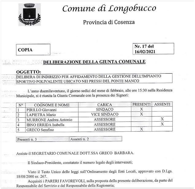 L’altra mattina, inaugurazione dell’Impianto polivalente di località Destro (frazione di Longobucco), dopo 15 anni, alla chetichella, senza post strombazzati sui social, ma con inviti riservati e personali. Praticamente all’oscuro della popolazione e degli stessi consiglieri comunali.