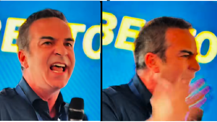 Basta osservarlo per capire che vive costantemente sull’attenti, incapace di rilassarsi anche per un istante. Suda, si interrompe, si agita, alza la voce più per nascondere che per convincere. E quando sorride, sembra più una smorfia che un gesto spontaneo.