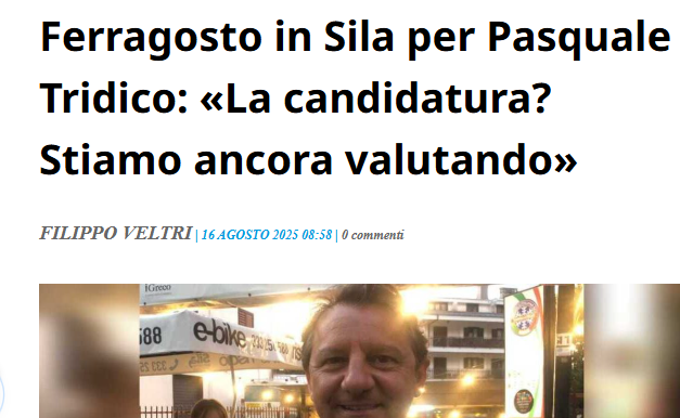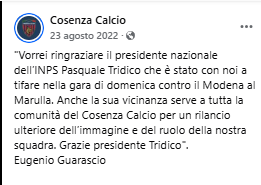Di seguito, un post con annessa fotografia (con Tridico e Guarascio insieme) che risale a non molto tempo fa, al 23 agosto 2022… Ogni commento è superfluo… Ma un’avvertenza è necessaria: se davvero fosse Tridico a rappresentare il centrosinistra sarebbe una goduria commentare la campagna elettorale ricordando le sue “prodezze”. Intelligenti pauca.Â