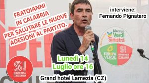 Domani scende in Calabria il segretario nazionale Nicola Fratoianni, che ha convocato una conferenza stampa per le ore 16 al Grand Hotel Lamezia. “Saranno presentati e salutati – si legge in una nota – i nuovi ingressi che si stanno registrando in tutto il territorio regionale, delle tante personalità politiche ed istituzionali, delle compagne e compagni che hanno deciso di condividere un percorso politico in una forza della coalizione progressista che incarna i valori più autentici e le battaglie per i diritti e la dignità, che sono propri della Sinistra del nostro Paese. La conferenza stampa sarà l’occasione per fare il punto sulla fase politica, sulle vicende internazionali e sulle battaglie parlamentari che AVS sta conducendo negli ultimi mesi, sulle vicende che interessano la Calabria, sulle iniziative messe in atto e quelle che organizzeremo nei prossimi mesi…”.