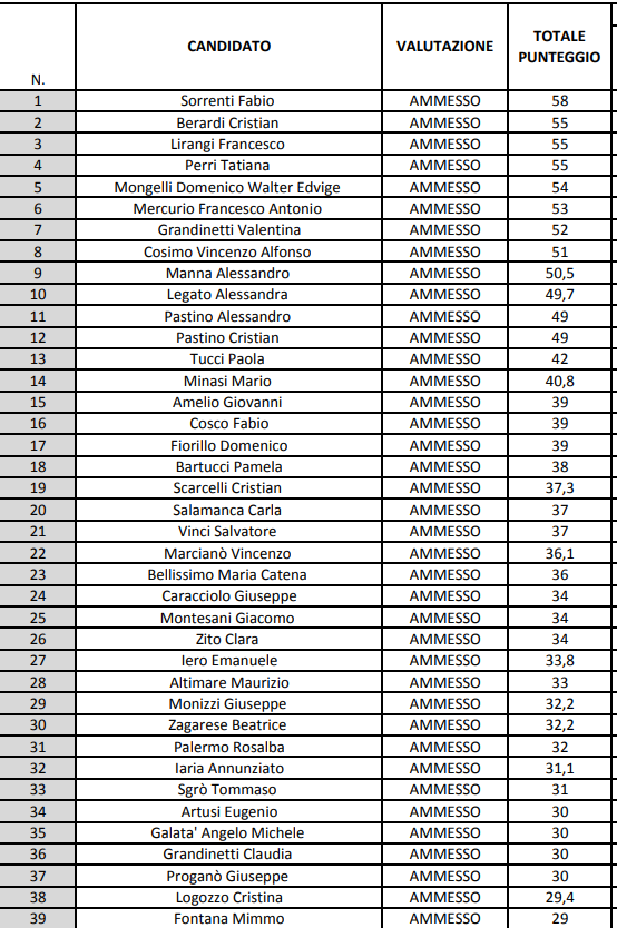 Contestualizzato il quadro generale, eccoci alle ultime notizie. Ad appena tre mesi dalla pubblicazione del bando, nei giorni scorsi è stata pubblicata la graduatoria provvisoria dell’Avviso per il Genio Civile. Tra i primi classificati dei 42 ammessi alla fase orale non manca nessuno delle signore e dei signori che abbiamo appena citato. Il gruppo è salvo! E le nostre previsioni, come al solito e come volevasi dimostrare, si sono avverate.