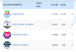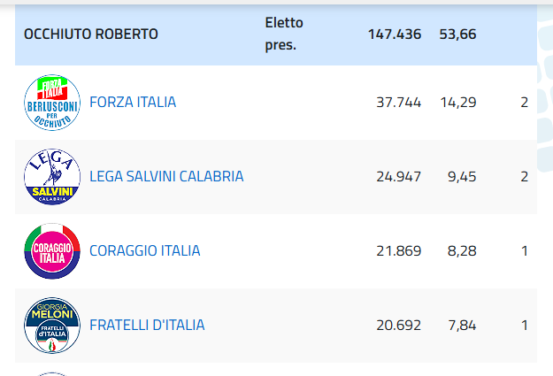 Calabria. I voti del centrodestra nella Circoscrizione di Catanzaro, Crotone e Vibo nel 2021 e i consiglieri eletti. Forza Mafia 14,2%, Lega 9,4%, FdI 7,8%