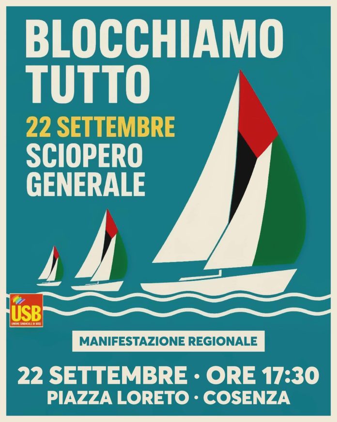 Oggi lunedì 22 settembre, in tutta Italia ci saranno mobilitazioni forti e determinate per lo sciopero generale indetto dall’Unione Sindacale di Base (USB), a supporto della missione della Global Sumud Flotilla che ha contribuito a riaccendere i riflettori sulla catastrofe umanitaria a Gaza, attuata scientificamente dalle forze israeliane di occupazione. L’obiettivo è chiaro, è stato indicato dai lavoratori portuali e da decine di gruppi solidali alla causa palestinese: bloccare tutto per costringere le istituzioni a confrontarsi con la nostra indisponibilità a essere complici.