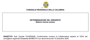 Attenzione, risulta contrattualizzato come collaboratore esperto al 100%, ma di fatto fa l’autista alla consigliera Barbuto. Tutti possono agevolmente capire che Barbuto non può avere nominato Tavernise perché è “bello” e nemmeno perché è bravo ma è stato contrattualizzato solo ed esclusivamente per volere di Tridico. Radio Cittadella dice che ha una grossa rata da pagare per la sua Mercedes e non ha né un mestiere né un lavoro. Sarà vero?
