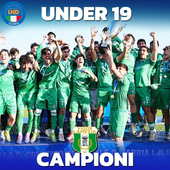 Ripresa che vive di accelerazioni, ma nessuna delle due squadre riesce a trovare il varco giusto per impensierire la retroguardia avversaria, anche se la Digiesse rimane in dieci uomini, come detto, per il rosso a Sacko, per doppia ammonizione. La Vigor Lamezia ci crede, non molla la presa, ed al terzo minuto di recupero trova il pari, ormai quasi insperato, con Costanzo che ci prova dalla distanza riuscendo a trafiggere Banfi, aiutato anche dal vento a favore che allunga la palla nell’angolo basso alla destra del numero uno praiese. Per assegnare il titolo regionale sono necessari i tempi supplementari. Girandola di sostituzioni e ventidue in campo stanchissimi nei trenta minuti residui, ma i biancoverdi di mister Visciglia trovano la forza per ribaltare il punteggio con il colpo di testa di Silvagni sugli sviluppi di un calcio di punizione battuto da Ferrari, rete molto simile per dinamica a quella del vantaggio avversario nel primo tempo. La Digiesse si scopre da qui in avanti per cercare il pari che porterebbe la sfida ai tiri di rigore, ma ad un minuto dal fischio finale il subentrato Tropea colpisce in contropiede mettendo a segno il gol del definitivo 3-1 a favore della Vigor Lamezia, che vince il campionato Under 19 a distanza di ventinove anni dalla sua prima ed ultima volta.