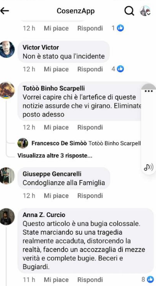 “La notizia è inesatta – ci hanno scritto -: la tragedia del ragazzo morto con il trattore a Camigliatello è avvenuta in un’azienda agricola e non per strada come hanno scritto i giornali e i siti online: non c’era nessun guardrail contro cui avrebbe impattato il giovane… Giulio è andato a finire in una scarpata, vicino all’hotel La Fattoria. Le dinamiche e il luogo nel quale è avvenuto l’incidente sono totalmente sballate. Vi ripetiamo: è successo in un’ azienda privata e non per strada come vorrebbero farvi credere…”.