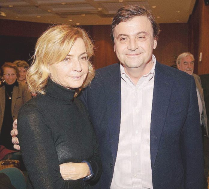 Carlo Calenda con la madre, Cristina Comencini, durante il convegno "Siamo europeri" a Roma, 1 febbraio 2019. ANSA/CLAUDIO PERI