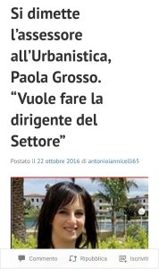 2. Grosso Paola, (compagna di G. M. indagato nel processo Athena) candidata, divenuta assessore del Comune e in seguito, dopo aver “attinto” alla graduatoria del Comune di Villapiana, per la categoria D1 con profilo professionale di istruttore tecnico direttivo, le è stata conferita la “dirigenza” del settore PNRR per il Comune di Cassano, nonostante le dimissioni del compagno dal consiglio comunale.