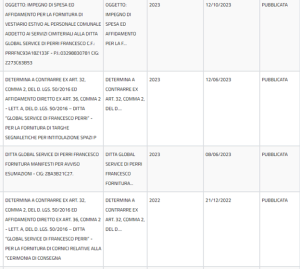 Risultano strani anche gli ultimi due affidamenti diretti: uno affidato al papà della candidata M. M al consiglio comunale.