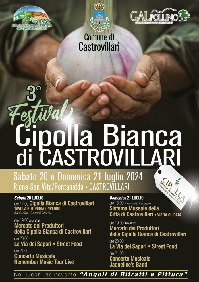 Castrovillari si prepara alla III^ edizione del “Festival della Cipolla Bianca” in programma sabato 20 e domenica 21 luglio; evento organizzato dalla Locale Amministrazione Comunale con il contributo del GAL Pollino Sviluppo.