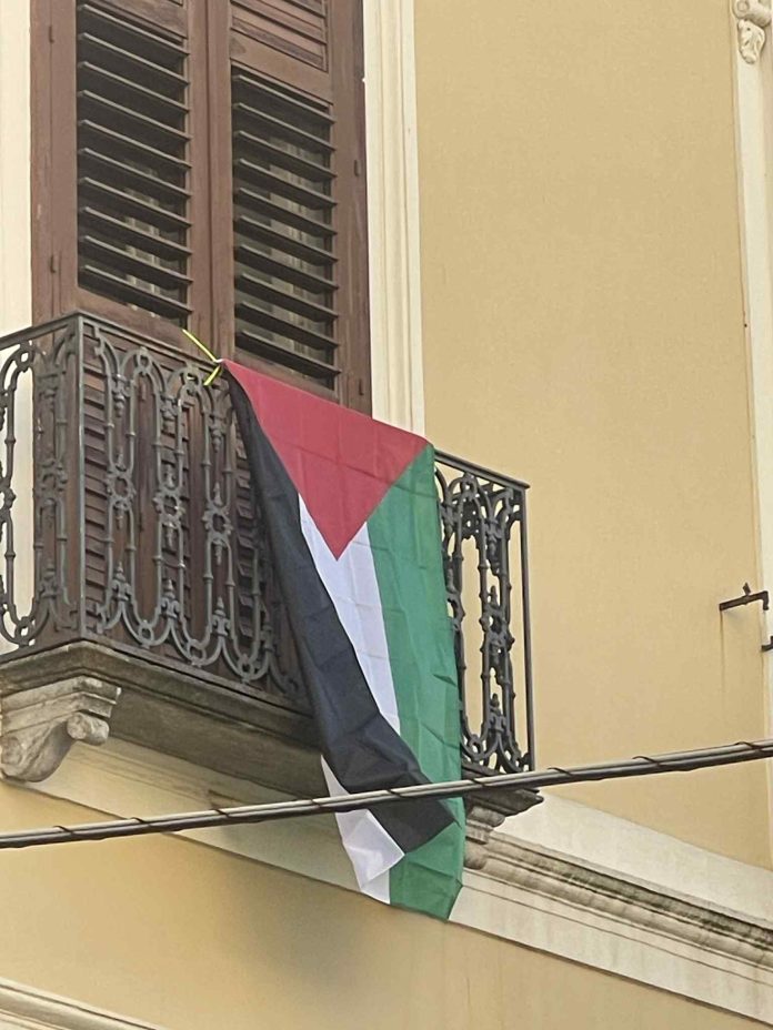 A Catanzaro una grande bandiera palestinese sventola dalla sede del Codacons, simbolo di vicinanza a una popolazione martoriata da violenze e silenzi.