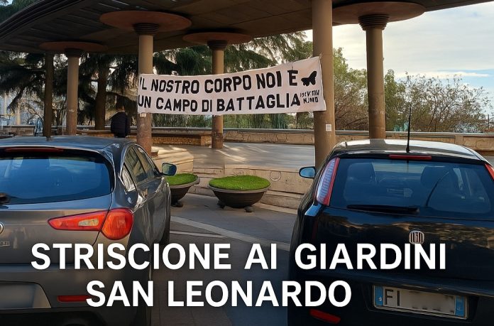 Una grande scritta appesa ai giardini di San Leonardo e un manifesto pubblico per ribadire che “i nostri corpi non sono campi di battaglia”. Con questo messaggio il Collettivo Aurora ha promosso questa mattina un’iniziativa di sensibilizzazione contro la violenza sulle donne, in vista delle giornate di mobilitazione del 25 novembre.