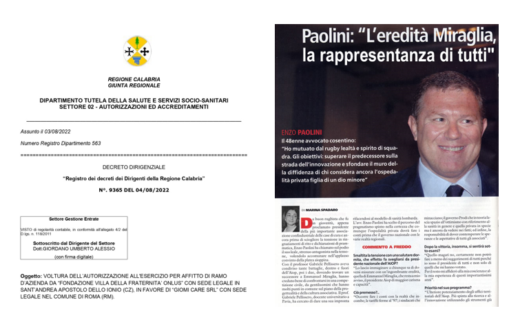 Il futuro è scritto ed ha un nome e cognome, Giomi alias Emmanuel Miraglia, che peraltro aveva già fatto capolino in Calabria cercando di acquisire Fondazione Betania, prima dello scandalo di Messina e che, nei primi giorni di agosto 2022, compra il ramo di azienda di Villa della Fraternità, l’hospice di Sant’Andrea dello Jonio. Roba da preti, non da scherzo di preti, un poco come doveva avvenire con la struttura della curia di Catanzaro, Fondazione Betania, dove fra vescovi massomafiosi e vescovi promossi per ladrocinio la storia che si sta scrivendo per il Sant’Anna Hospital, si doveva replicare e diventare manuale, nonostante il furto di cassa e le morti sospette. Anche qui il futuro non appare dei migliori, perché ogni simile cerca il suo simile e chi, si sta candidando per comprare Fondazione Betania pare abbia lo stesso Dna di padre Piero Puglisi, il palazzinaro di Squillace ed il trafficante dei fondi della Caritas di Catanzaro.