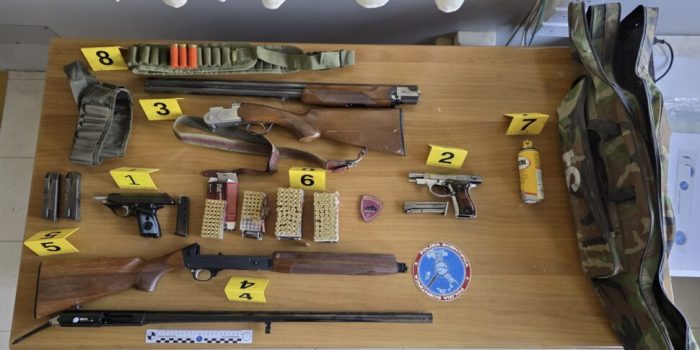 Durante i controlli, mirati soprattutto a soggetti con precedenti penali, sono stati sequestrati due fucili — uno dei quali risultato rubato nel 2022 — due pistole con matricola abrasa, caricatori e circa 200 munizioni. Il tutto era nascosto in un vano sottoscala murato ad arte. Recuperati anche 350 grammi di sostanza da taglio, solitamente utilizzata per il confezionamento di stupefacenti.