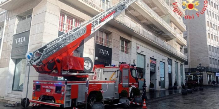 Squadre dei vigili del fuoco del Comando di Catanzaro – sede centrale – sono state impegnate su Corso Mazzini per la rimozione di parti ammalorate di cornicioni e sottobalconi.