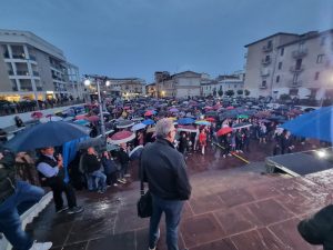 Anche questa volta, la prima sotto la pioggia, come 5 anni fa. Grazie ai concittadini che sono rimasti sotto la pioggia, con gli ombrelli, con le giacche sulla testa, stretti sotto i portici.