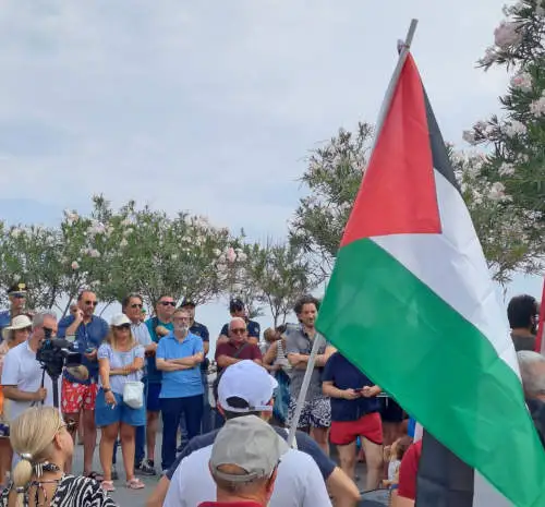 Grande partecipazione e forti emozioni questa mattina a Schiavonea per la Marcia in acqua per Gaza, promossa da un ampio cartello di associazioni, movimenti e forze politiche.