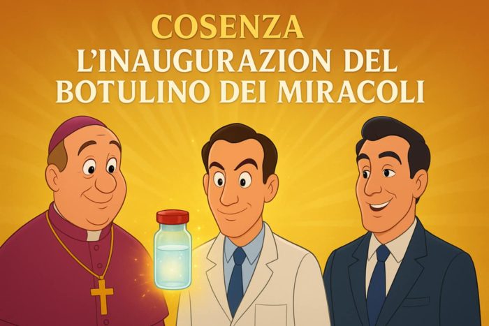 E si chiude così uno degli eventi più spirituali, comici e tecnicamente inutili della storia sanitaria cosentina. Il frigo è stato inaugurato. La fialetta pure. Il vescovo ha fatto straordinario. Occhiuto ha tuonato da remoto. E l’Annunziata aggiunge un’altra barzelletta al suo repertorio già più ricco dei Carabinieri. Prossimo appuntamento? L’inaugurazione della mensolina porta-fiala, che — giurano — sarà un evento ancora più solenne. Prenotate i posti. Cosenza merita. Sia lodato Occhiu’… sempre sia lodato!