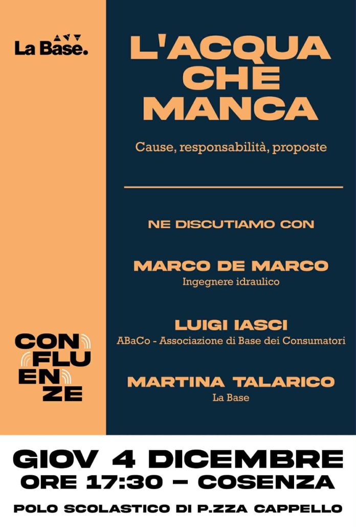 Cosenza. Emergenza acqua, domani iniziativa pubblica e attivazione di uno Sportello Legale di tutela per la cittadinanza.