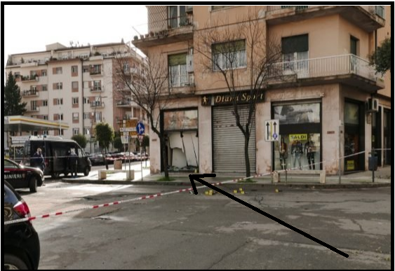 La traiettoria della spaccata. A guardare le foto, i banditi scelgono di sfondare, con una Fiat Stilo stationwagon, la vetrina del negozio posta davanti a una panchina di cemento. Quindi, come si vede dalle foto, la traiettoria del mezzo usato per sfondare avviene in maniera obliqua e non frontale come si usa generalmente in questi casi per dare maggior forza all’impatto. Qui invece sfondano in obliquo.