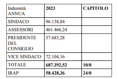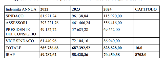 Per assessori e presidente del Consiglio l’indennità fin qui erogata era pari a 2.800 euro circa. Passerà a 4.806 euro (era 4.096 euro nel 2022 e salirà a 5.796 nel 2024). La determina dirigenziale, con le nuove cifre, è stata pubblicata pochi giorni fa.