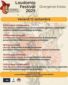 L’edizione 2025 di Laudomia Festival prende ufficialmente il via giovedì 11 settembre e prosegue venerdì 12 e sabato 13 a Cosenza, tra La Base (via Macallè) e le Statue del Museo all’Aperto Bilotti in Corso Mazzini.
