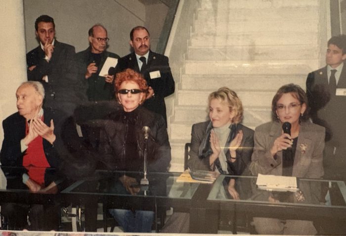 Del quale quel pomeriggio del 27 ottobre 2001 feci le spese personalmente. Mi ero preparata con cura alla conferenza stampa di inaugurazione del Cinema Italia ristrutturato, documentandomi sull’ospite, che ammiravo da sempre. Presentandola al pubblico accorso avevo quindi parlato delle varie fasi della sua vita professionale e ricordato i principali successi. A lei avrei lasciato la parola sui progetti futuri, che sapevo esserci e tanti. Ricordo che davanti a me c’era anche Franco Piperno, assessore, il quale a conferenza terminata mi disse che risentire i titoli di tante bellissime canzoni lo aveva riportato indietro nel tempo, era stato – disse – “come una carezza sul cuore”.