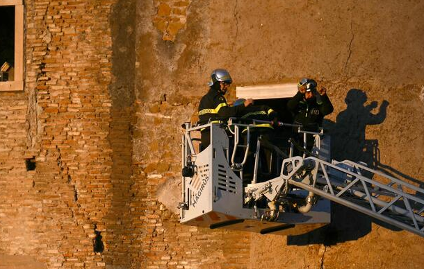 I vigili del fuoco sono dentro la Torre dei Conti e continuano a estrarre i detriti, sia con la macchina aspiratori sia con le mani, per tentare di salvare l’operaio rimasto intrappolato. In uno dei momenti preparatori all’operazione, le persone affacciate ai palazzi limitrofi, hanno sentito i soccorritori chiamarlo, chiedendogli come stesse e dicendogli: “stiamo arrivando”. Mentre i vigili sono all’interno della torre sui Fori, si vede una piccola coltre di polvere uscire dalle finestre frontali del palazzo.