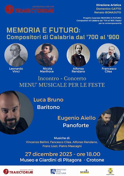 ๐Ÿ“œLuca Bruno – baritono impegnato da anni sulle scene nazionali e internazionali, musicologo e docente di musica da camera al Conservatorio di Cosenza โ€“ per lโ€™incontro concerto di Crotone proporrร  un programma di musiche da camera organizzato come un vero e proprio โ€œmenรนโ€ musicale pensato per le feste.