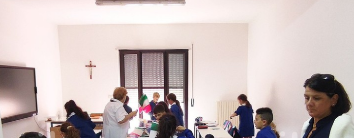 Anche se gli alunni svolgono le lezioni già da inizio dell’anno scolastico negli alloggi dell’insediamento militare, la consegna dei 12 appartamenti è stata resa ufficiale questa mattina nel corso di una cerimonia dell’alzabandiera collettiva svolta insieme da militari ed alunni.