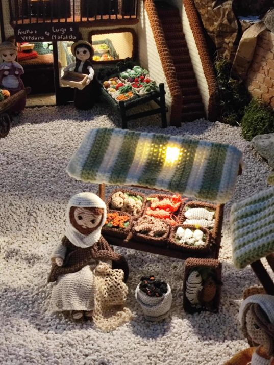 Per quanto ci risulta, è l’unico presepe in Italia di queste dimensioni, 15 metri quadrati, in cui tutto il lavoro all’uncinetto è stato realizzato interamente da una sola persona, l’artista Paola Brunetti.