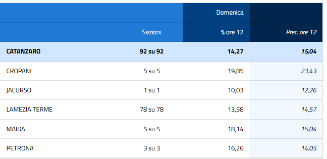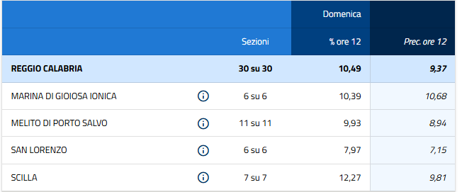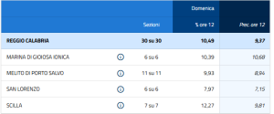Eligendo, il servizio elettorale del Ministero dell’Interno, ha diffuso tutti i dati dell’affluenza alle urne alle ore 12 per i 17 comuni calabresi interessati da questa tornata elettorale.