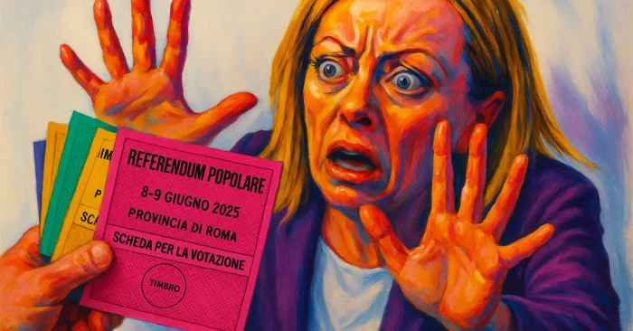 (di Matteo Suanno – mowmag.com) – È girato ovunque, proprio come voleva lei: intervistata ai margini della parata del 2 giugno, la premier Giorgia Meloni annuncia che l’8-9 giugno si recherà alle urne ma non ritirerà le schede del referendum su cittadinanza e lavoro. Che tradotto significa: “Vengo, e mi metto così, vicino a una finestra, di profilo, in controluce…”, come diceva Nanni Moretti in Ecce Bombo. Insomma, un capolavoro di ambiguità, propaganda e paraculismo made in Palazzo Chigi, detto con l’aplomb di chi ti dice che ti vuole bene mentre ti sfila il portafogli. Ma non c’è nulla di cui stupirsi: è la solita doppiezza, stavolta applicata al referendum. Solo che, in questo caso, mettersi il cappotto della democrazia per poi restare sull’uscio, non fa altro che erodere quel diritto al voto che, dalle politiche alle consultazioni popolari, in Italia è agonizzante da un pezzo. O no?