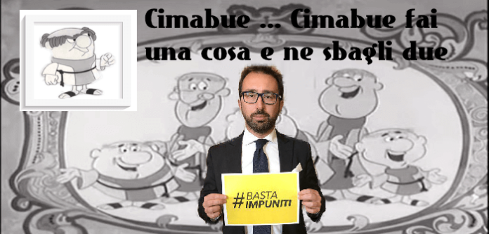 Il fraticello, infatti, non ne azzeccava una e alla fine della storiella veniva sempre ripreso da tutti gli altri frati che gli cantavano il famoso ritornello: “Cimabue, Cimabue fai una cosa e ne sbagli due …”. Cimabue ogni volta rispondeva “Ma che cagnara … sbagliando s’impara” E, invece, non imparava mai … come il nostro Ministro Bonafede.