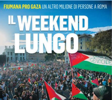 (di Marco Travaglio – Il Fatto Quotidiano) – Giorgia Meloni aveva evocato sprezzante il “weekend lungo” e l’ha avuto: due giorni di manifestazioni in tutte le piazze d’Italia, con quasi tre milioni di cittadini in un ideale serpentone di oltre mille chilometri. Come da statistica, c’era anche qualche testa calda che menava le mani e qualche testa vuota che imbrattava la statua di papa Giovanni Paolo II. Troppo poco rispetto a quanto non tanto nascostamente sperava il governo, che ha fatto di tutto per soffiare sul fuoco, sognando incidenti gravi che ribaltassero il comune sentire contro lo sterminio a Gaza e chi, in Italia e in Europa, non fa niente per fermarlo e punirlo.